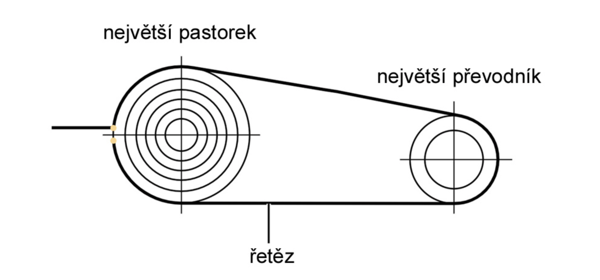 - Nasaď řetěz na největší převodník a největší pastorek.