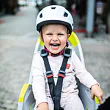 - Sedačka je vhodná pro děti od 9 měsíců (dítě musí umět sedět samo) do 22kg, má výškově stavitelné opěrky nohou, ochranu před výpletem kola, 3-bodové upínací popruhy, opěradlo s prolisem pro helmu.