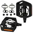 Jedná se o nový systém pedálů zaměřený na jezdce, žačínající s nášlapnými pedály. Ve srovnání s běžnými pedály nebo pedály s klipsnami nebízí nášlapné pedály nesrovnatelně vyšší účinnost přenosu energie z nohou jezdce do pohonu byciklu. Pedály SHIMANO CLIC´R umožňují ujet více, rychleji a déle s menší únavou. A nejen to. Lepší stabilita zlepšuje schopnost ovládání byciklu. Dejte sbohem staré neúčinné obuvi a vyměňte ji za nášlapnou.