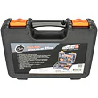 Vše je přehledně uložené v pevném plastovém kufru, takže nářadí má své místo a nic se neztrácí.